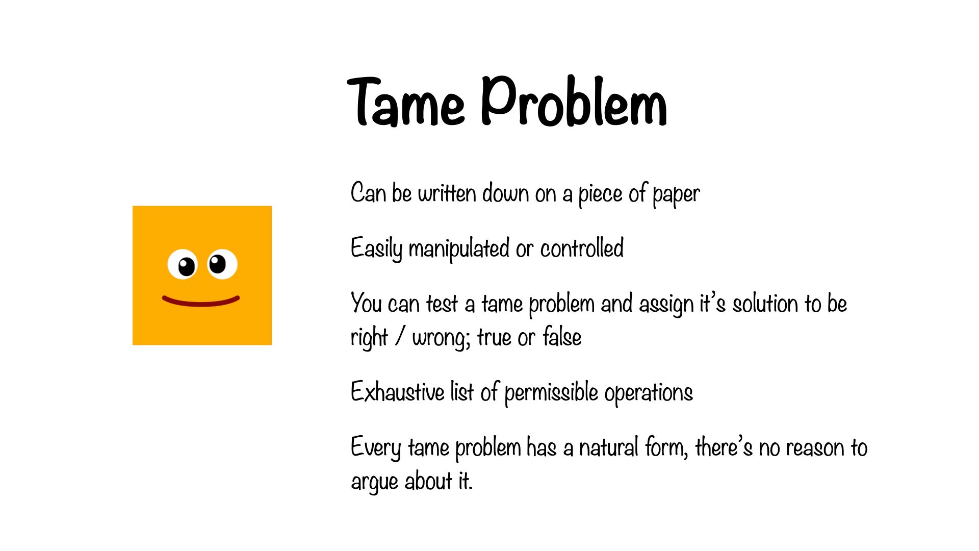 There are no Tame Problems, Every tame problem lives inside a bigger wicked problem. To tackle a wicked problem, we slice it into smaller, somewhat tamable problems.