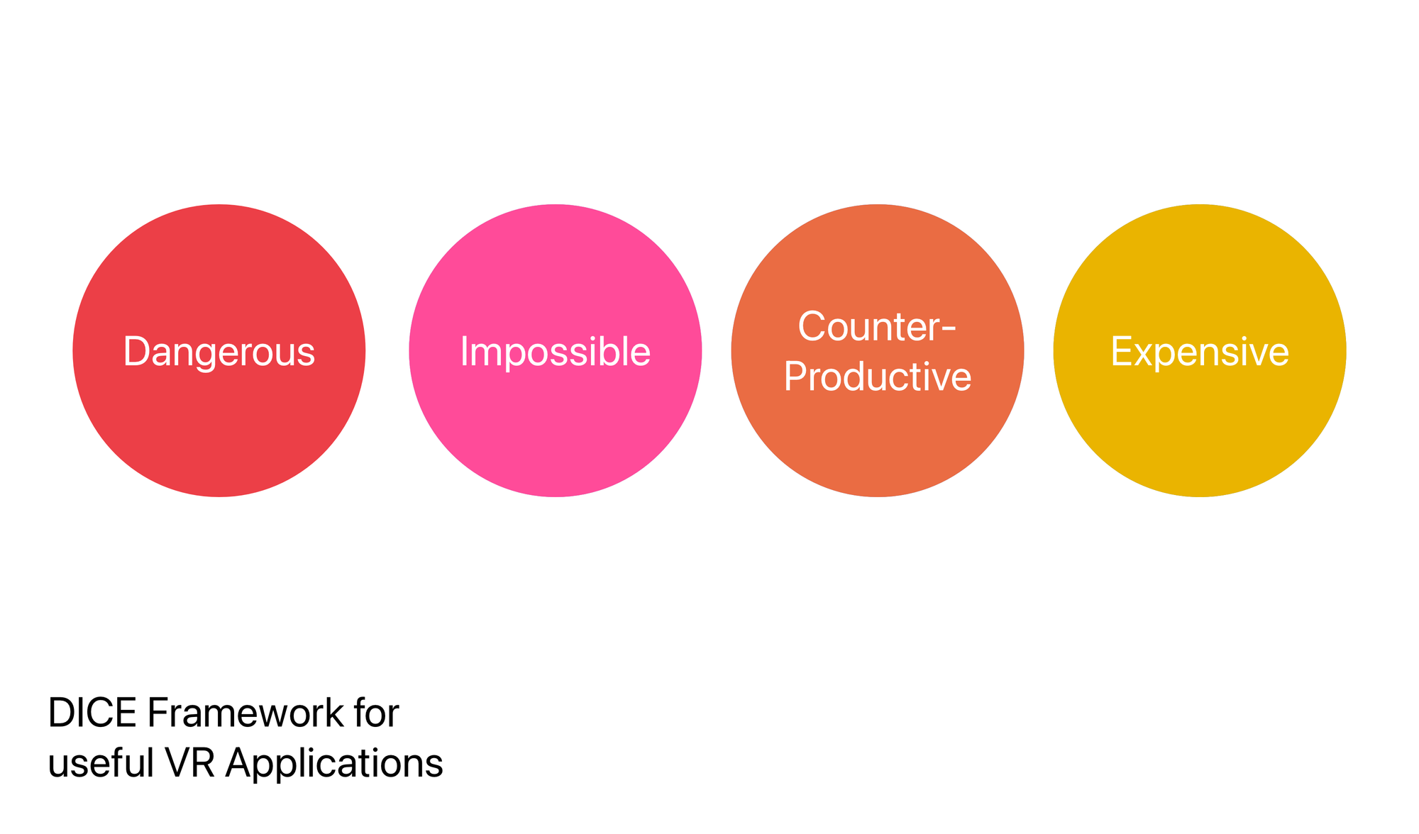 The DICE Framework and other similar frameworks are great for applications on pre-defined platforms like VR. They answer the question of "What kinds of applications would be cool for this platform?". In case of the DICE framework, it lays out clearly the kinds of experiences that would be great for VR headsets.