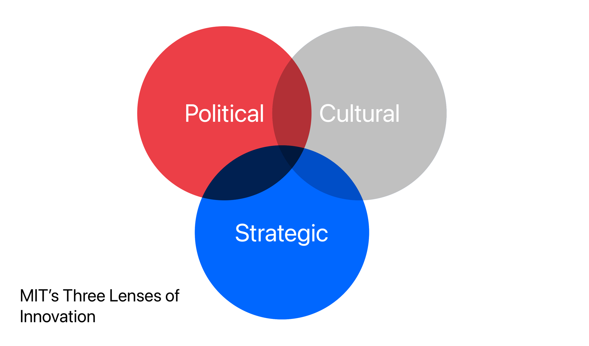MIT's Three Lenses of Innovation frame the design problem as something that sits in the political, cultural and strategic contexts. It provides an alternative approach to DVF and DICE frameworks.