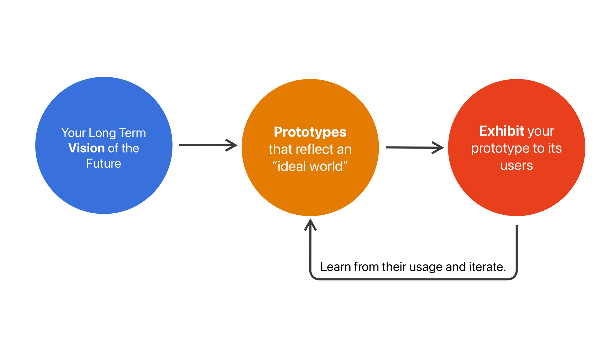 Here designers define a long term vision for how they want to see design in a certain problem space evolve, take a principled stance, build out prototype of their vision, followed by a highly iterative process to reach to a good design.
