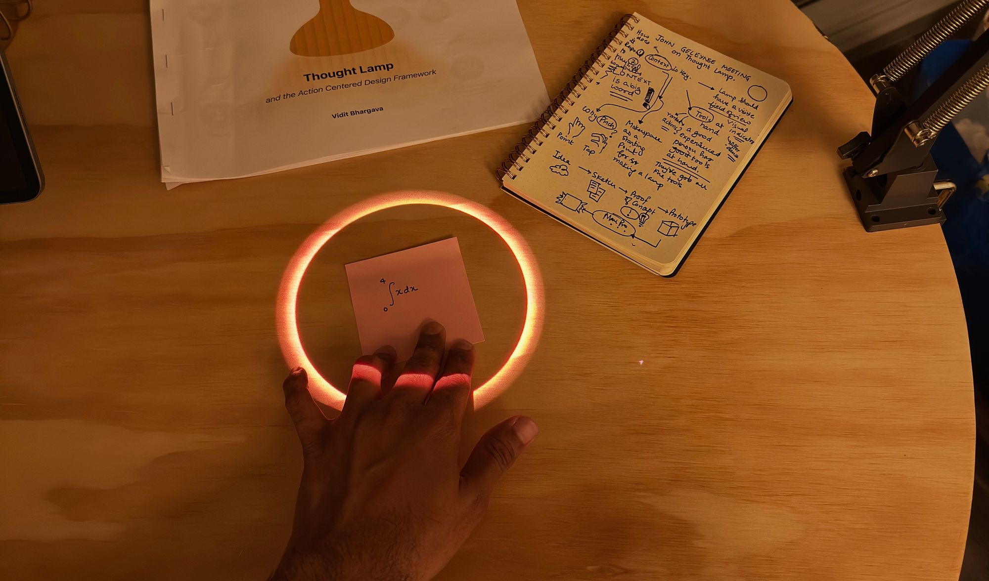 The thought lamp expands its actions and turns it into a physical and digital platform that allows anyone to build actions for it. Moving beyond just solving for students focus to a vision of augmented, ambient computing.